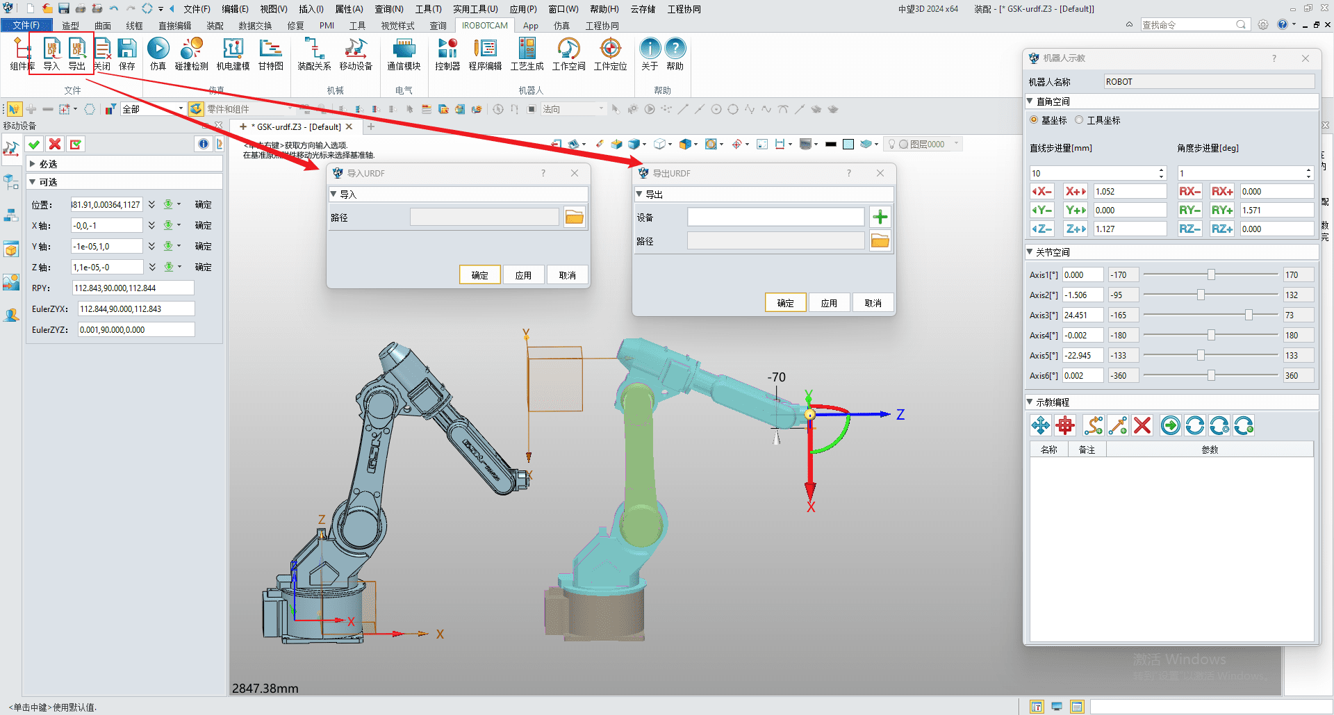- 提升機器人數字孿生應用的建模能力,機電協同與數字孿生的節拍優化,更好的呈現數字孿生的物理世界和數字世界的連接,同時利用模型精簡化,支持URDF導入與導出,提升大模型的數字孿生的交互可行性。