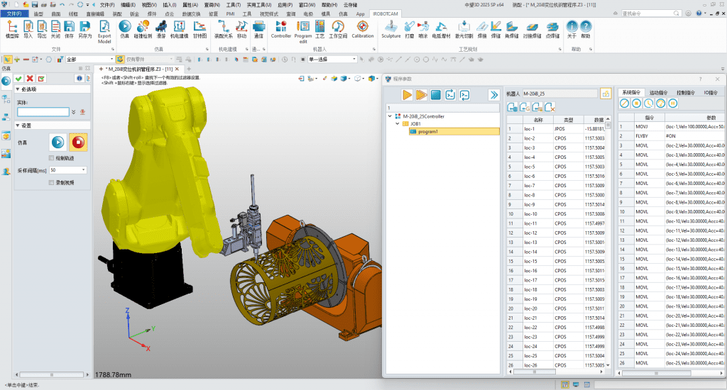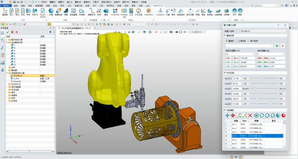 2) Elektromechanische Modellierung und Bewegungssimulation: iRobotCAM verfügt über ein elektromechanisches Modellierungsmodul, das für die Modellierung und Konstruktion von Produktionslinien sowie das virtuelle Debuggen von Robotern verwendet werden kann. Vor der eigentlichen Produktion kann der Laserbearbeitungsprozess in einer virtuellen Umgebung simuliert werden, um m?gliche Probleme im Voraus zu erkennen und zu l?sen, wie z. B. Kollisionsst?rungen der Roboterbewegung, die überprüfung der Robotersingularit?t, Erreichbarkeit und Kollision sowie Laserpfadfehler usw., um Fehler und Risiken beim tats?chlichen Debuggen zu reduzieren und die Produktionseffizienz und -sicherheit zu verbessern.