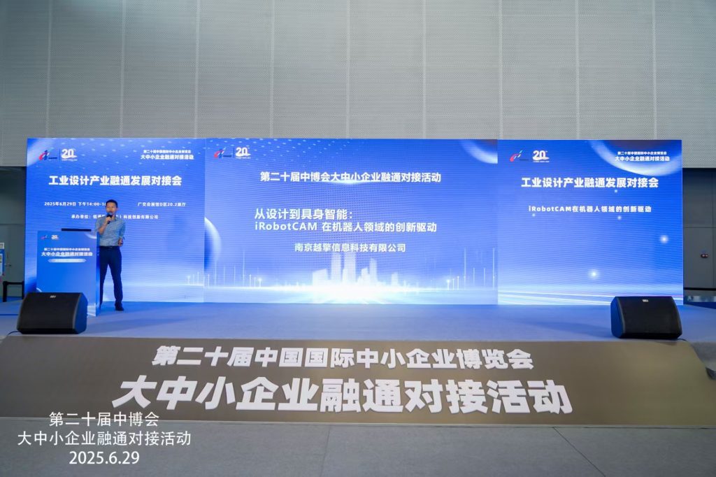 摘要:第二十屆中國國際中小企業博覽會于2025年6月27日在廣州開幕,展會共有境內外近2000家企業報名參展,包括主題展、專業展、配套活動和網上中博會。作為機器人設計與仿真軟件的工業軟件企業,南京越擎信息科技有限公司在產業融通對接會上全面展示了其自研的全國產的具身智能設計與仿真軟件iRobotCAM產品, 具身智能是一個火熱的賽道,iRobotCAM可以快速的將結構設計變為具身智能機器人設計,與ROS,Issac sim, Matalab, mujoco, bullet等仿真平臺實現對接聯調。